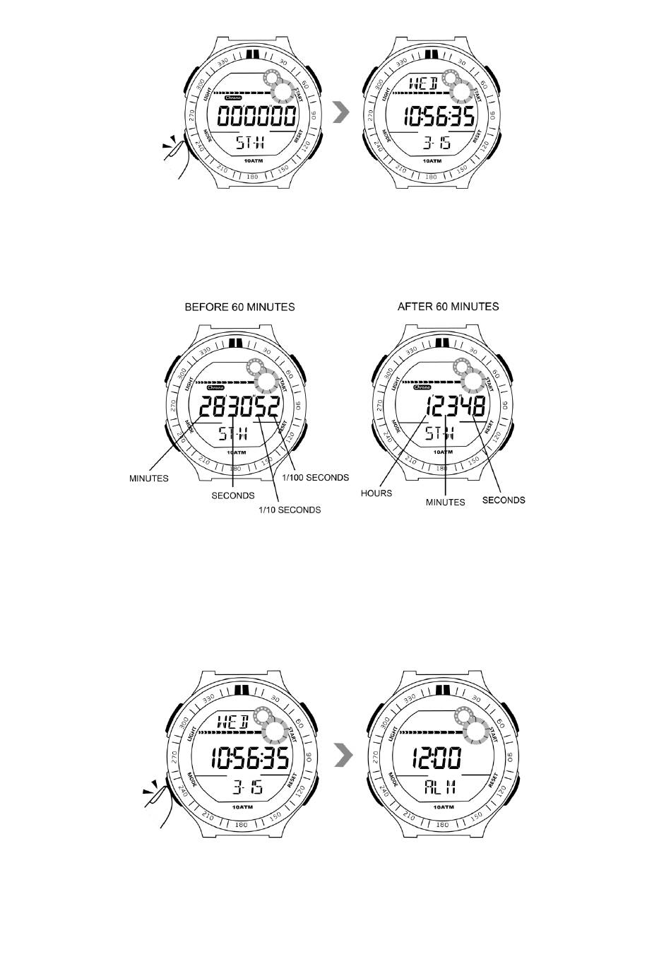 3.9 Drücken Sie die Modustaste viermal, um zum Zeitanzeigemodus zurückzukehren.
