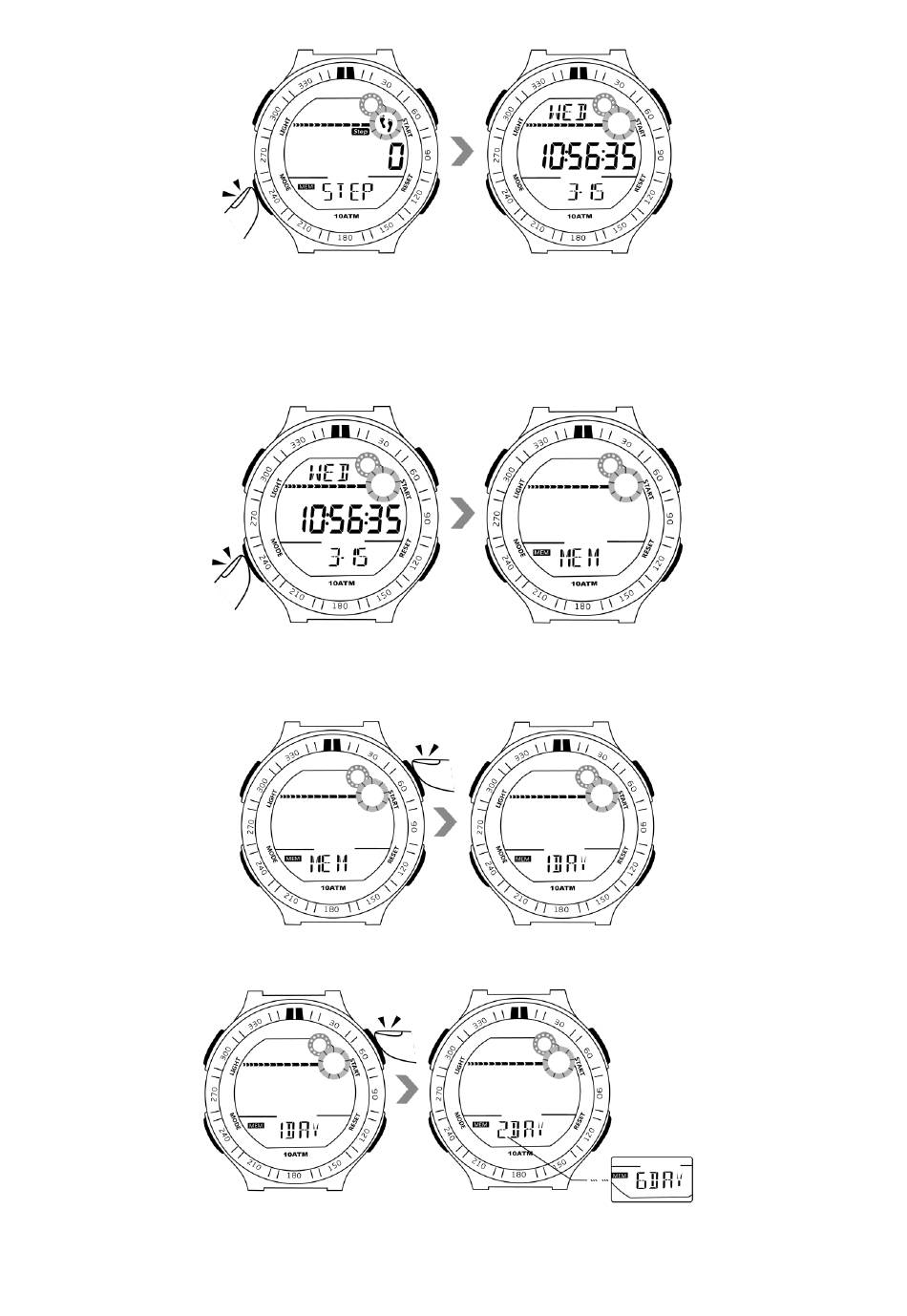 7.1 Drücken Sie im Zeitanzeigemodus die Modustaste viermal, um in den Speichermodus zu gelangen.