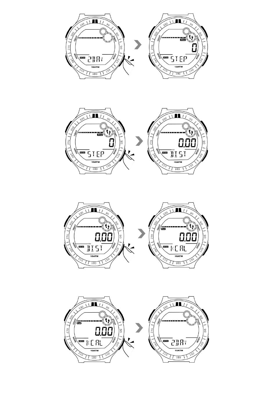 7.4 Drücken Sie die Reset-Taste erneut, um die Daten der Gehstrecke zu überprüfen.
