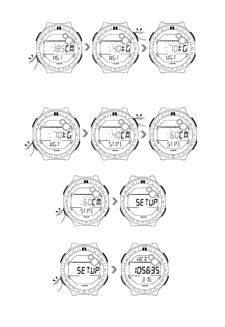 5.5 Appuyez une fois sur le bouton de mode, vous verrez le chiffre de la taille de pas commence à