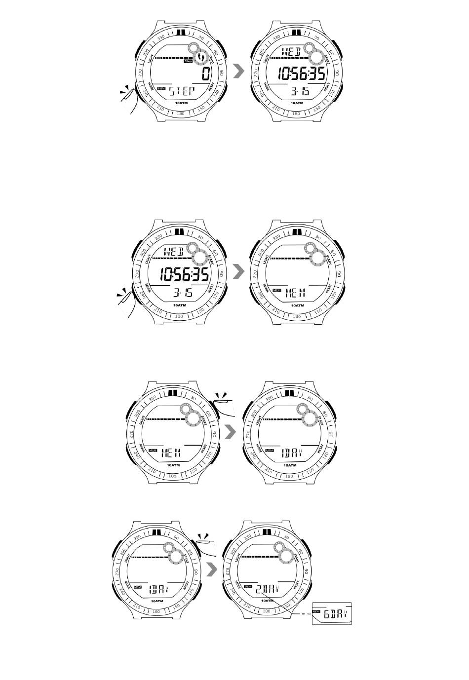7.1 En mode d'affichage de l'heure, appuyez sur le bouton de mode 4 fois pour entrer dans le mode