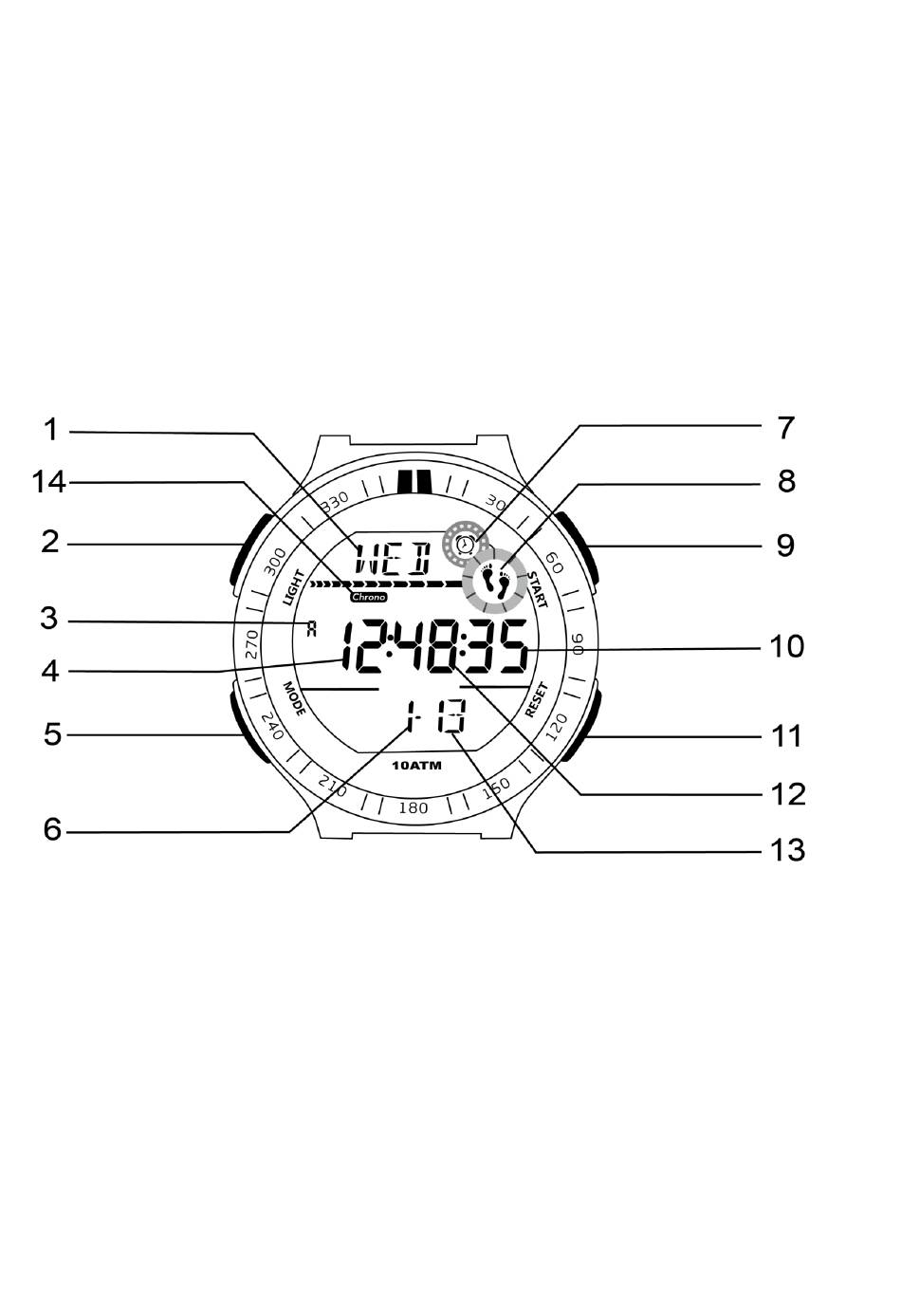 14. Indicatore del cronografo