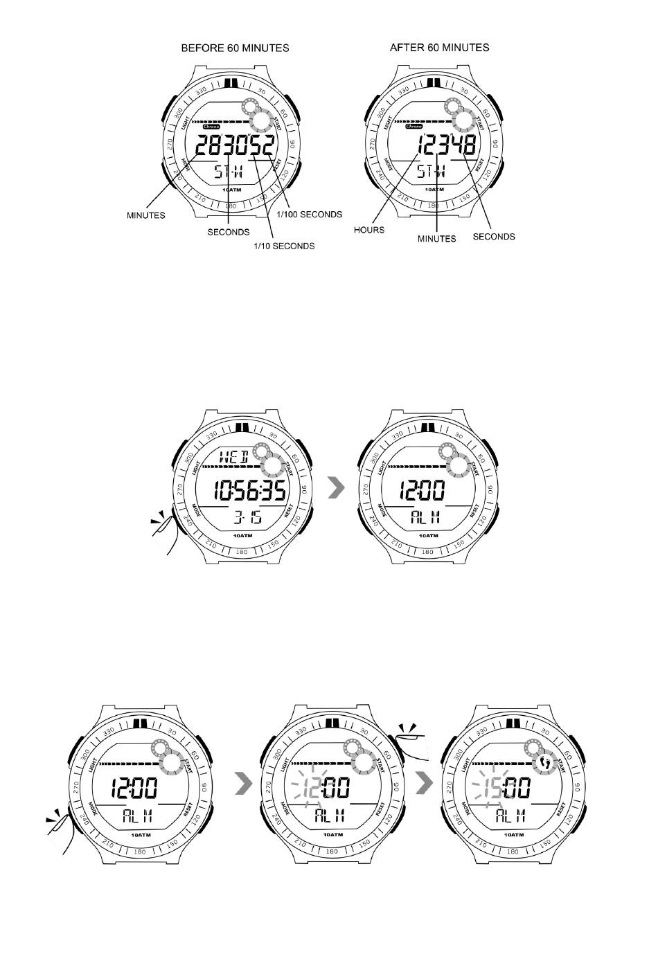 4.1 Nella modalità di visualizzazione dell'ora, premere il pulsante della modalità per 3 volte per accedere