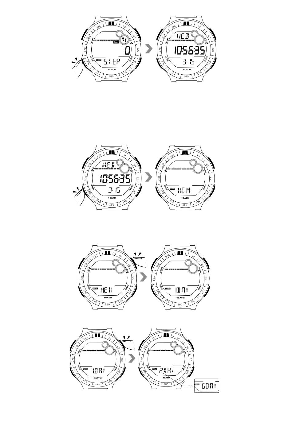 7.1 Nella modalità di visualizzazione dell'ora, premere il pulsante della modalità per 4 volte per accedere