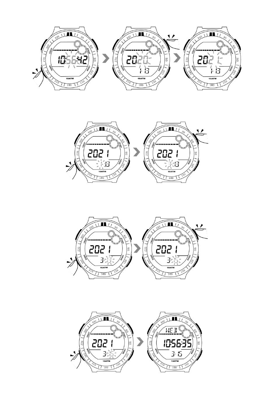 2.6 Presione el botón de modo una vez, verá que el dígito de la fecha comienza a parpadear, luego