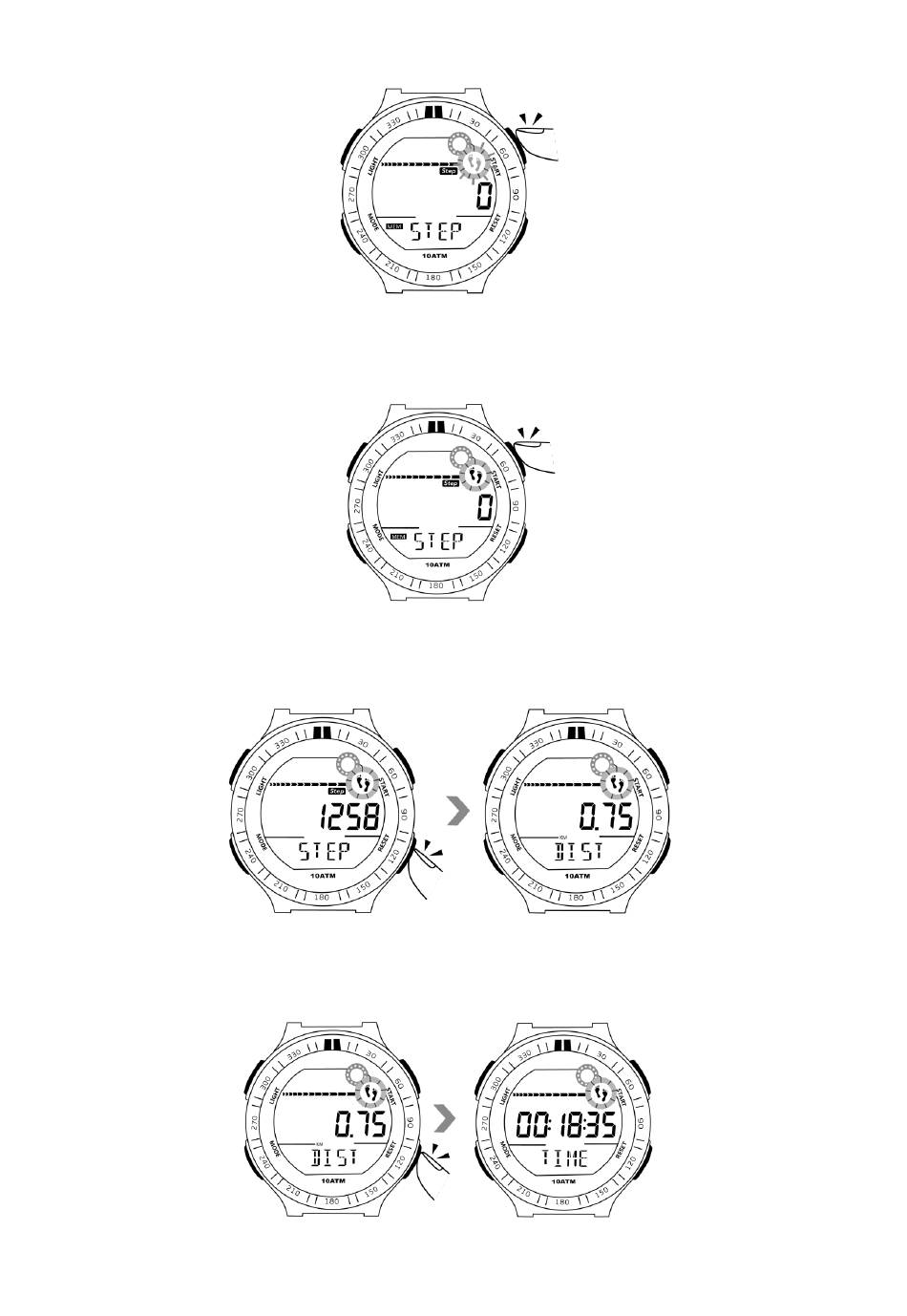 6.2 Presione el botón de inicio una vez para iniciar el conteo de pasos, el indicador del podómetro seguirá