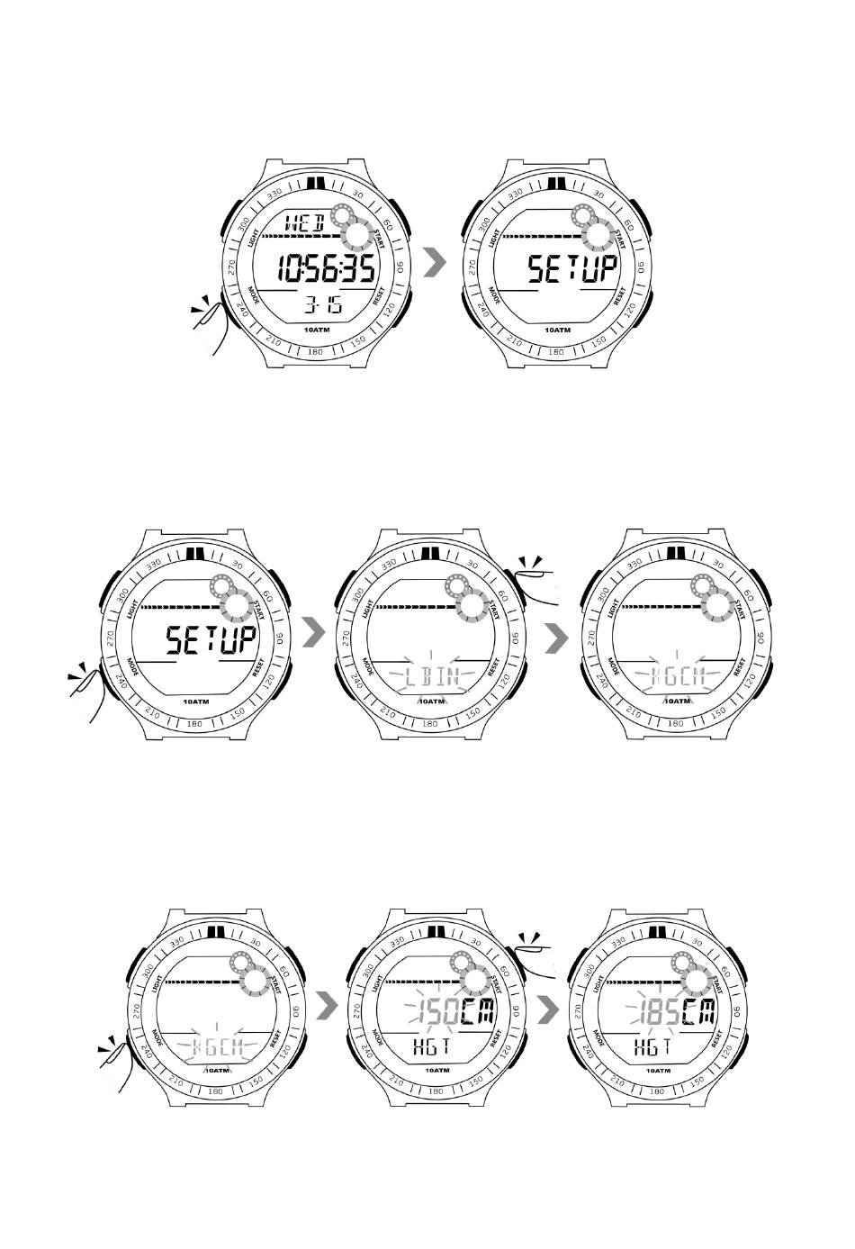 5.1 In the time display mode, press the mode button for 5 times to enter into the body parameters setup