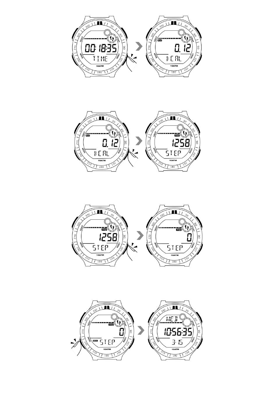 6.6 リセットボタンをもう一度押すと、リアルタイムの歩数カウントに戻ります。