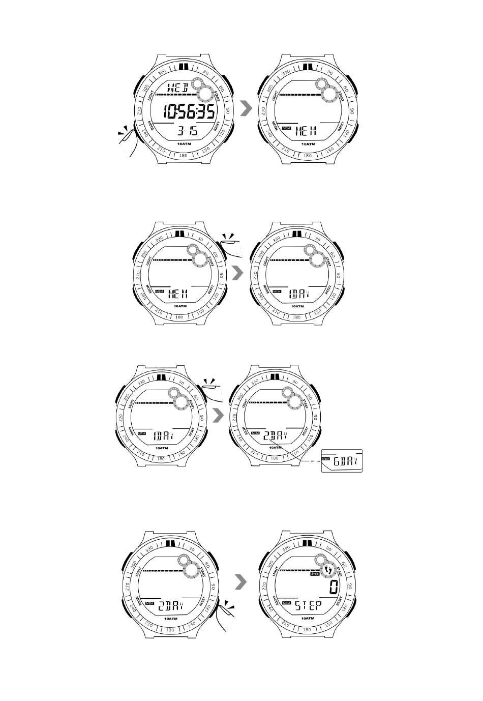 7.1 時間表示モードで、モードボタンを 4 回押して、メモリモードに入ります。
