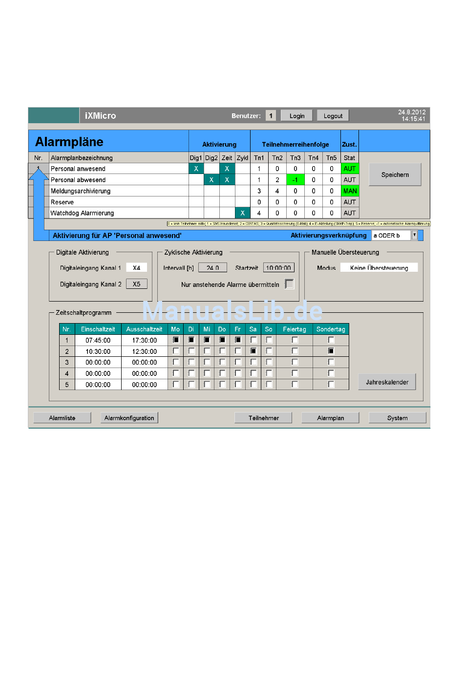 In diesem Bild werden die Alarmpläne konfiguriert. Dieses Bild kann nur in den Benutzerstufen