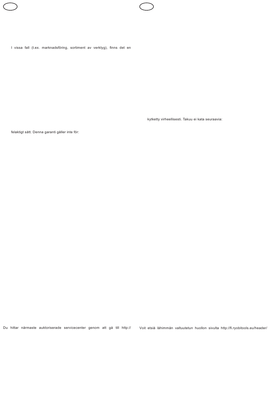 alueiden ulkopuolella, ota yhteys valtuutettuun RYOBI-jälleenmyyjään,