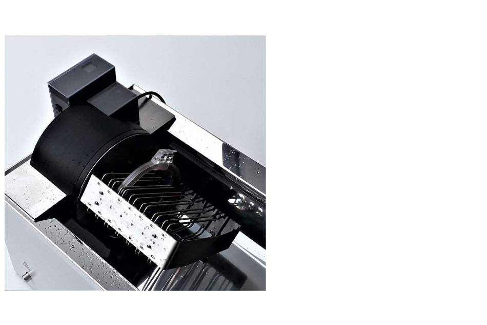 Betrieb 3.1 Befüllen mit Wasser Kontrollieren sie vor dem Befüllen des Wasserbads immer, ob der Ablaufhahn an der Gerätevorderseite geschlossen ist. Das Gerät mit sauberen Trinkwasser füllen. Die Edelstahlwanne fasst ca. 22 l Die korrekte Füllhöhe entspricht der Drehachse des Antriebsrads.