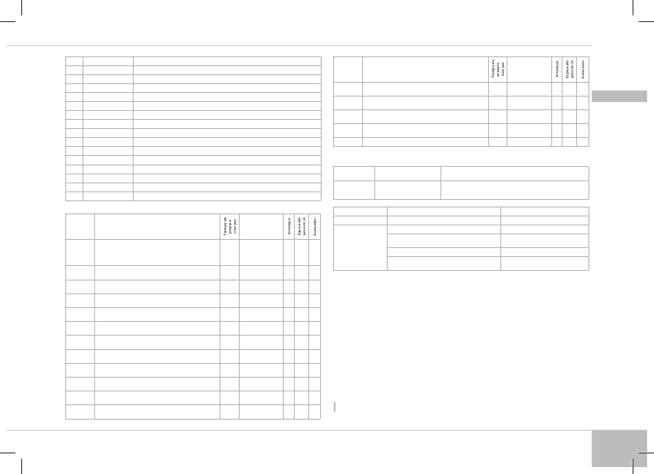 Cuadro sinóptico de los programas de preparación (ajustes de fábrica)