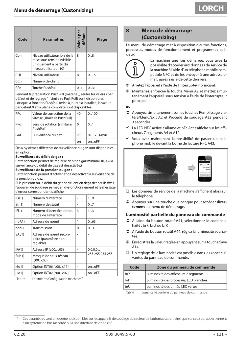 Ces paramètres sont uniquement disponibles sur les appareils de soudage du secteur de l'automatisation, ainsi que sur ceux qui appartiennent