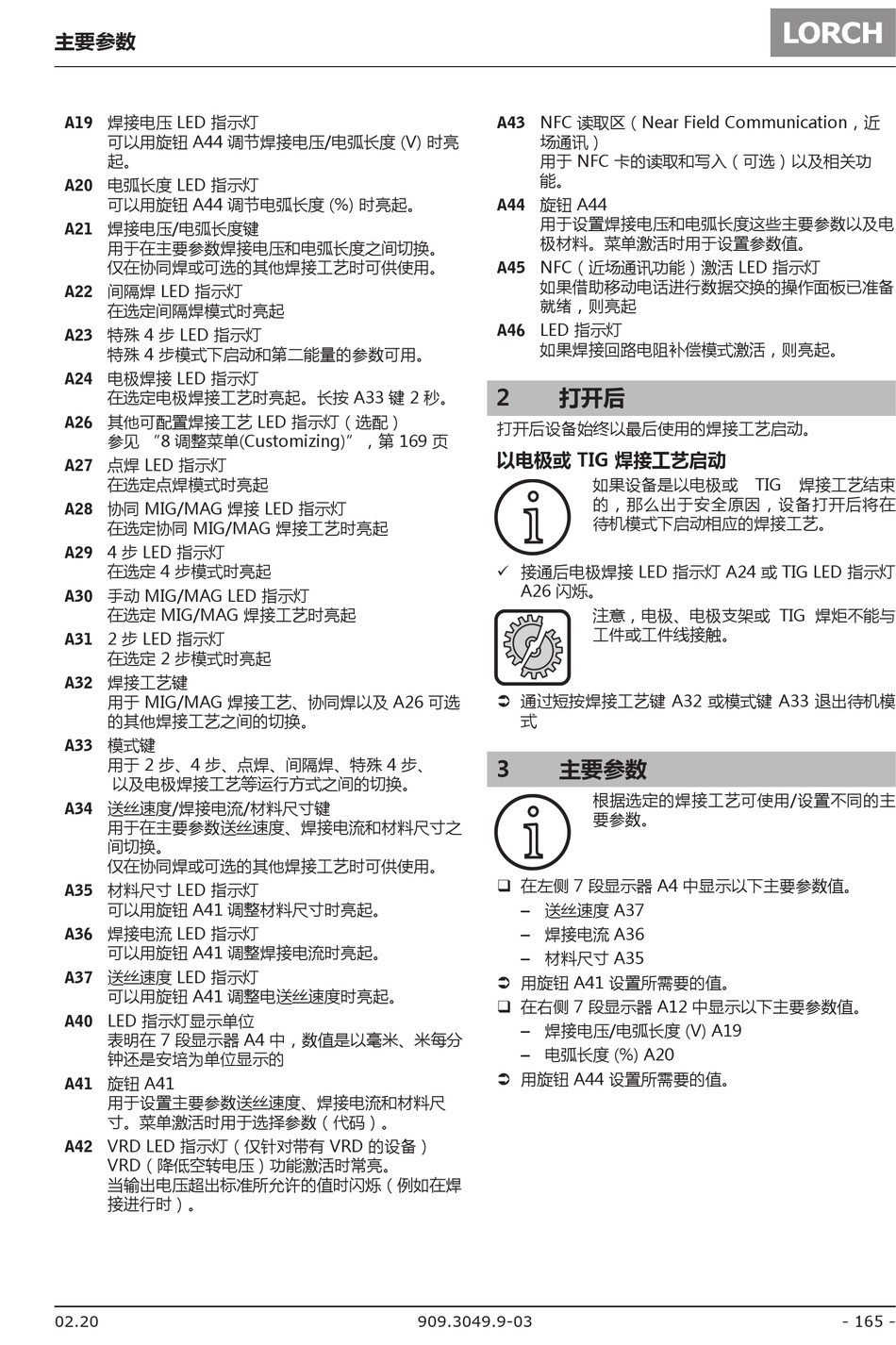 A30 手动 MIG/MAG LED 指示灯