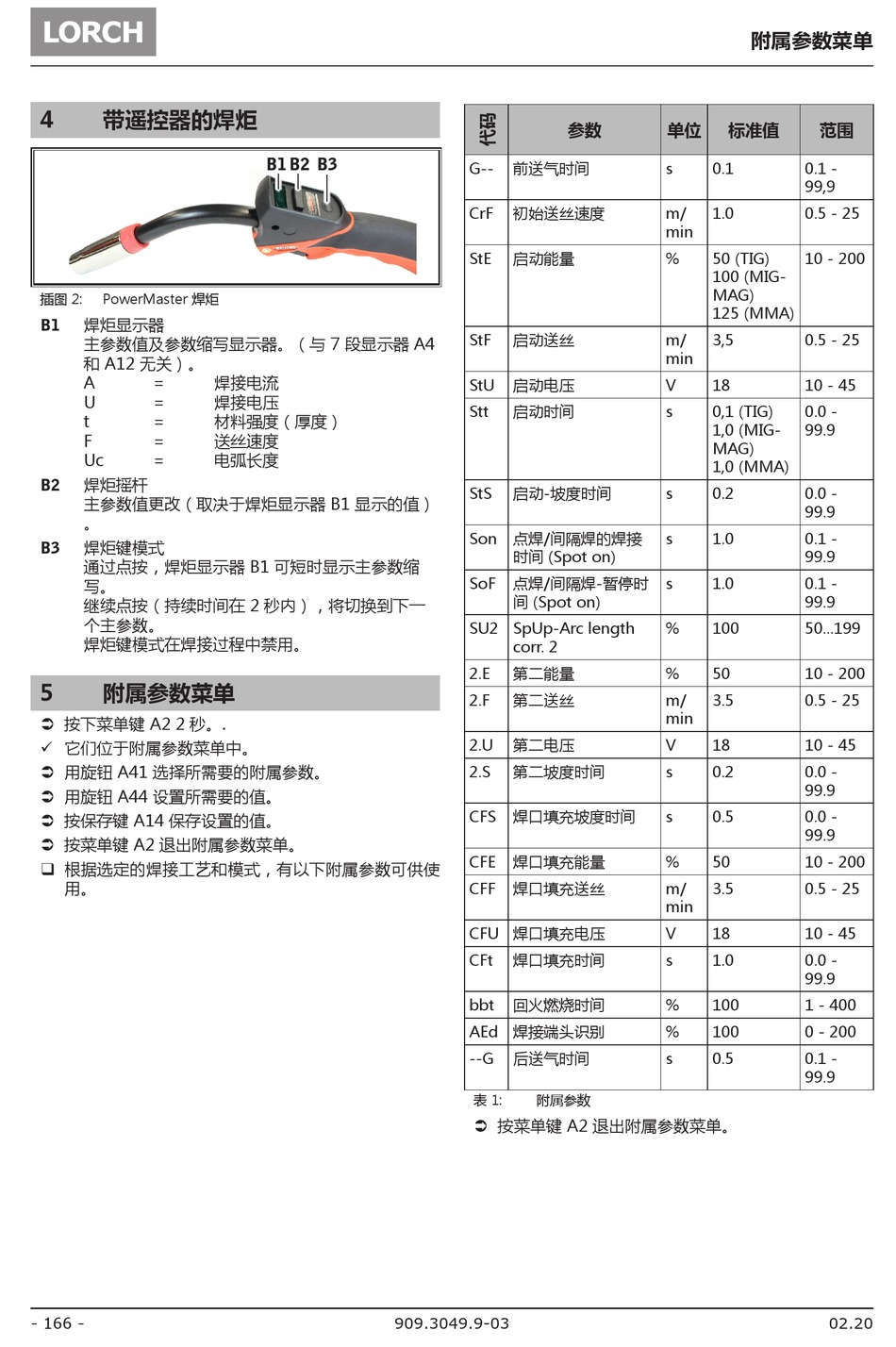 主参数值更改(取决于焊炬显示器 B1 显示的值)