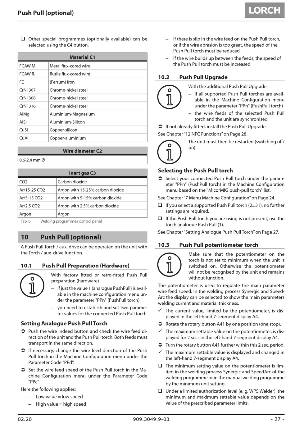 Set the wire feed speed of the Push Pull torch in the Ma-