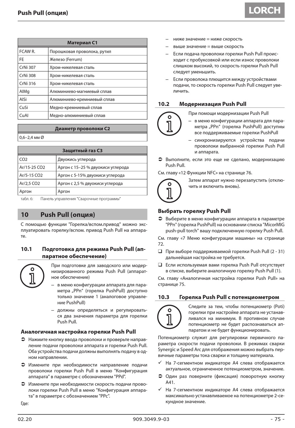 При выборе поддерживаемой горелки Push Pull (2 - 31)
