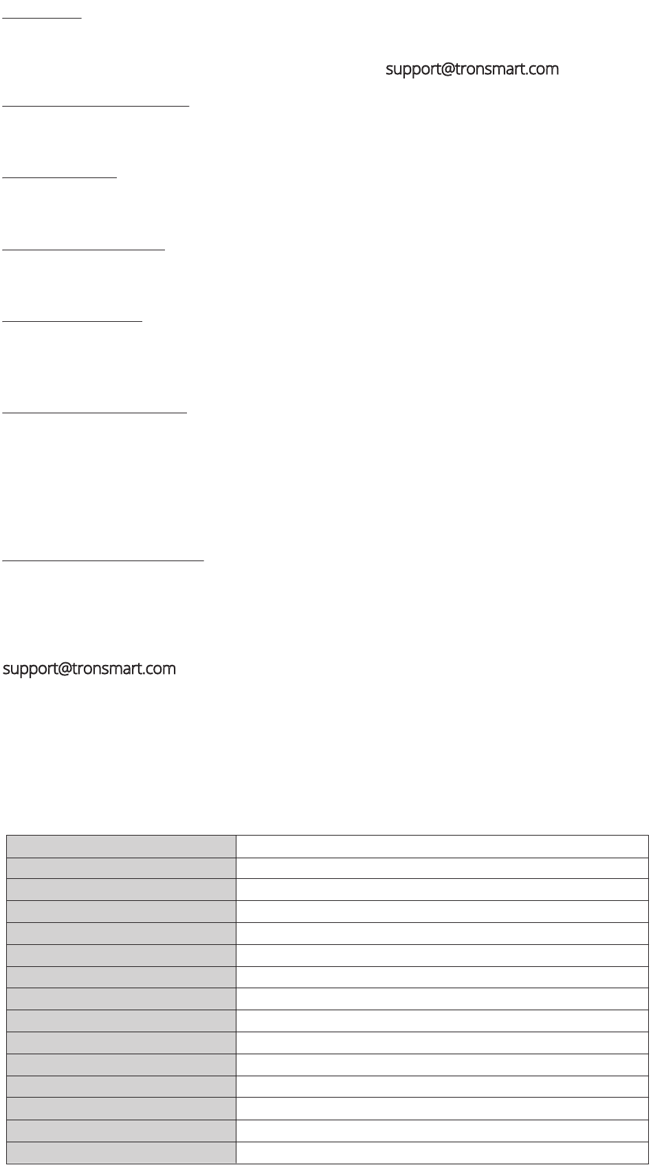 and service. Tronsmart is not responsible for the accidental use of this product and its liability