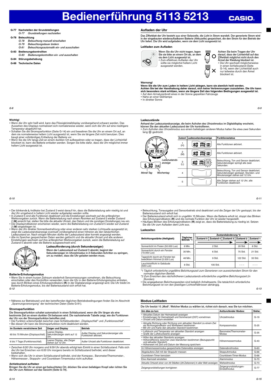 Uhr liefert. Die Uhr wird aufgeladen, wenn sie dem Licht ausgesetzt ist.
