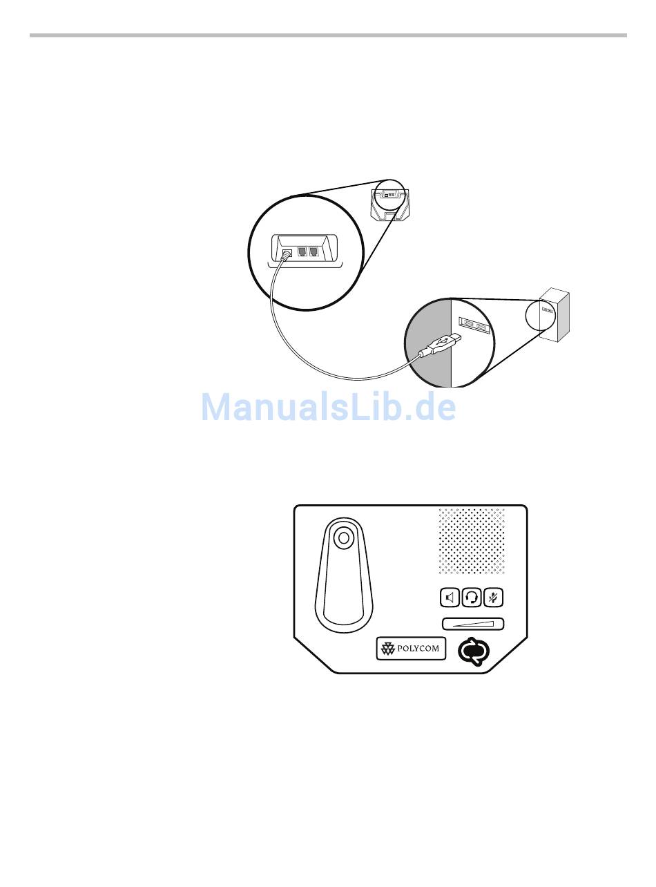 So schließen Sie das Polycom CX200 Tischtelefon an den Computer an: