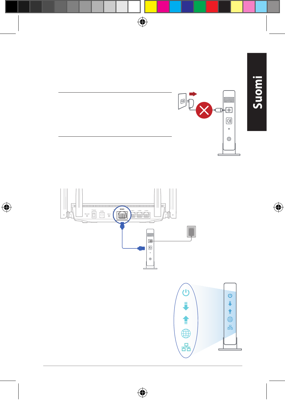 Kytke virta päälle virtakaapeliin/DSL-
