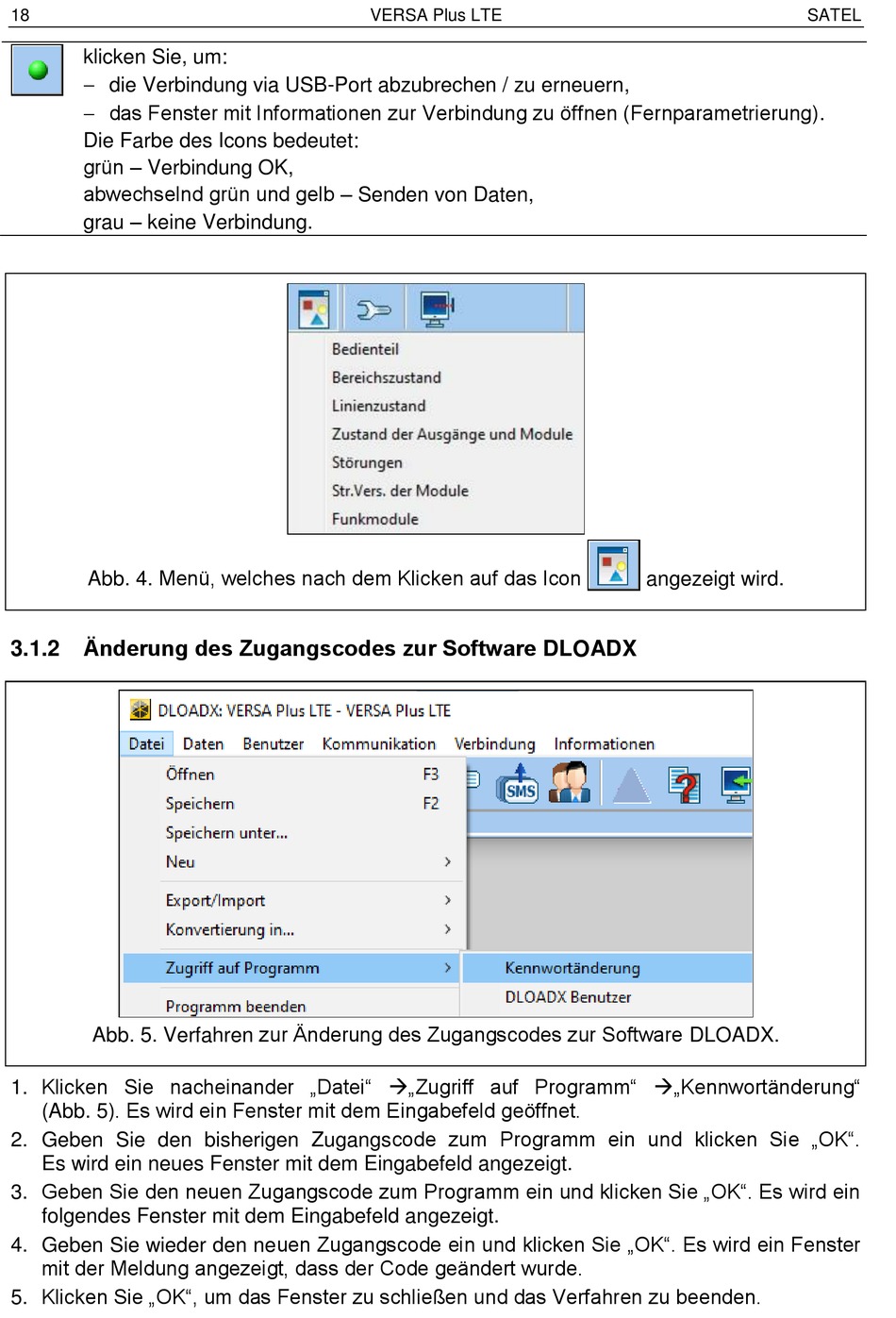 Abb. 5. Verfahren zur Änderung des Zugangscodes zur Software DLOADX.