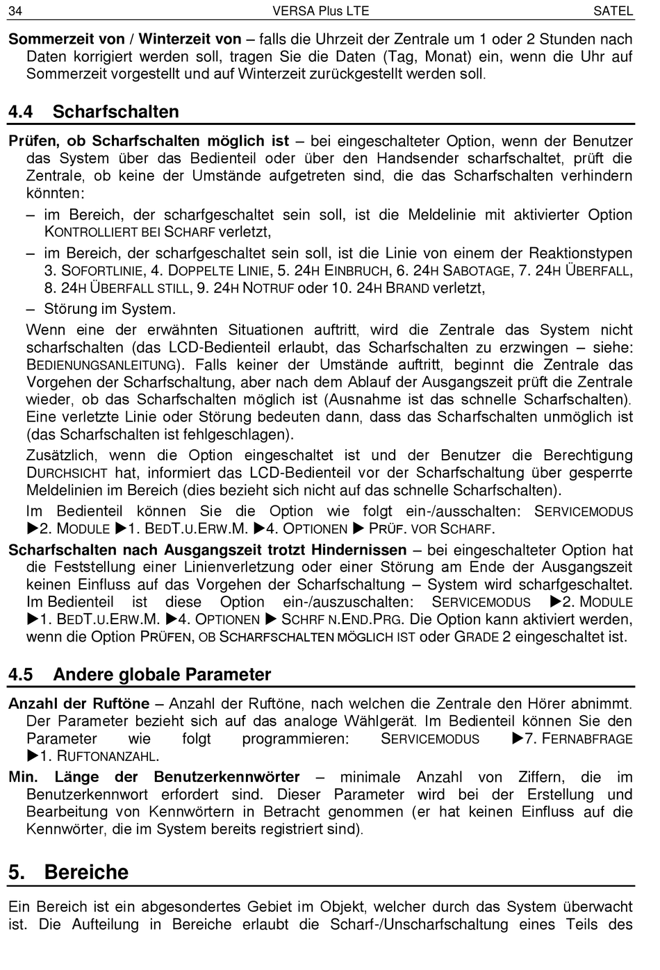 scharfschalten (das LCD-Bedienteil erlaubt, das Scharfschalten zu erzwingen – siehe: