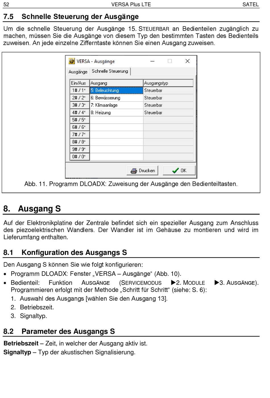 Programm DLOADX: Fenster „VERSA – Ausgänge" (Abb. 10).
