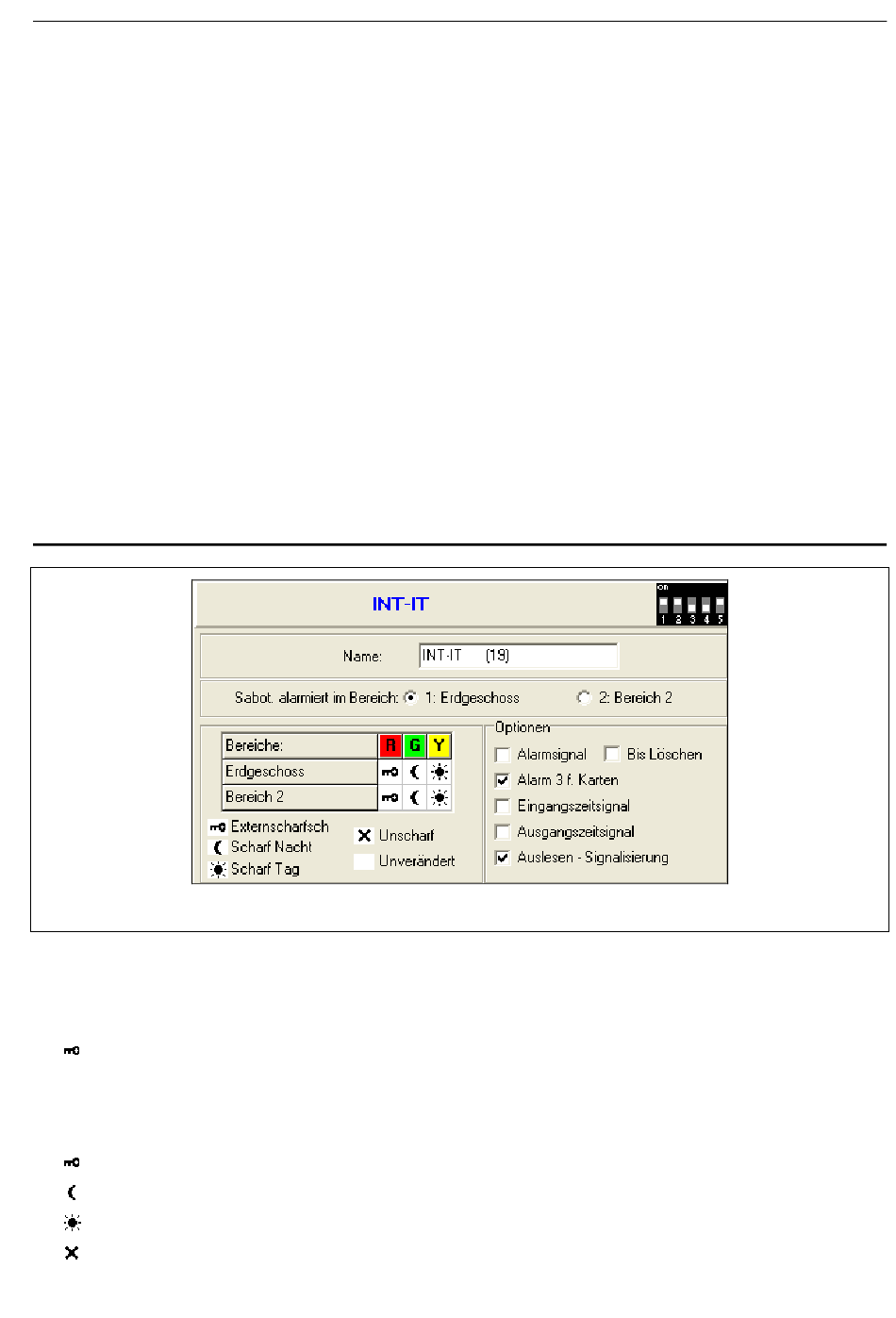 Abb. 21. Programm DLOADX: Konfiguration des Moduls zur Steuerung der Bereiche.