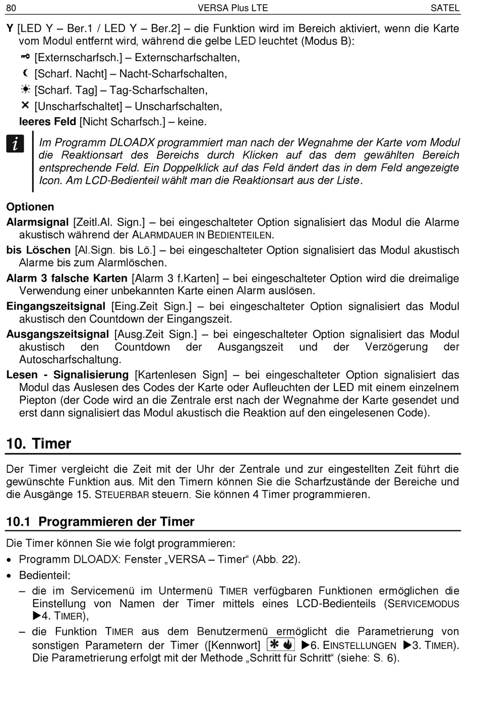Programm DLOADX: Fenster „VERSA – Timer" (Abb. 22).