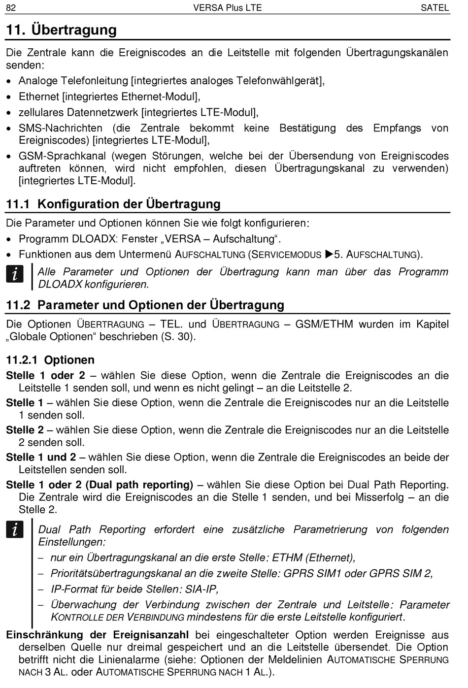 Die Zentrale kann die Ereigniscodes an die Leitstelle mit folgenden Übertragungskanälen