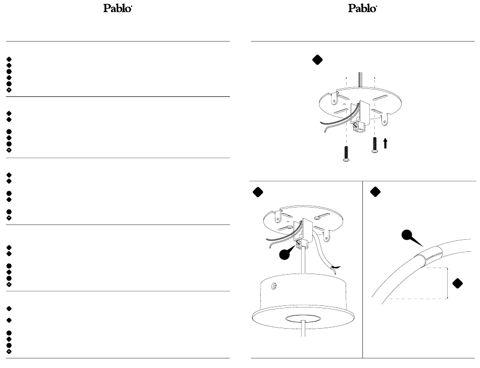 PASE EL APLIQUE Y LOS CABLES DEL EDIFICIO COMO SE MUESTRA Y TIRE DE CIRCA PENDANT HASTA LA ALTURA DESEADA;