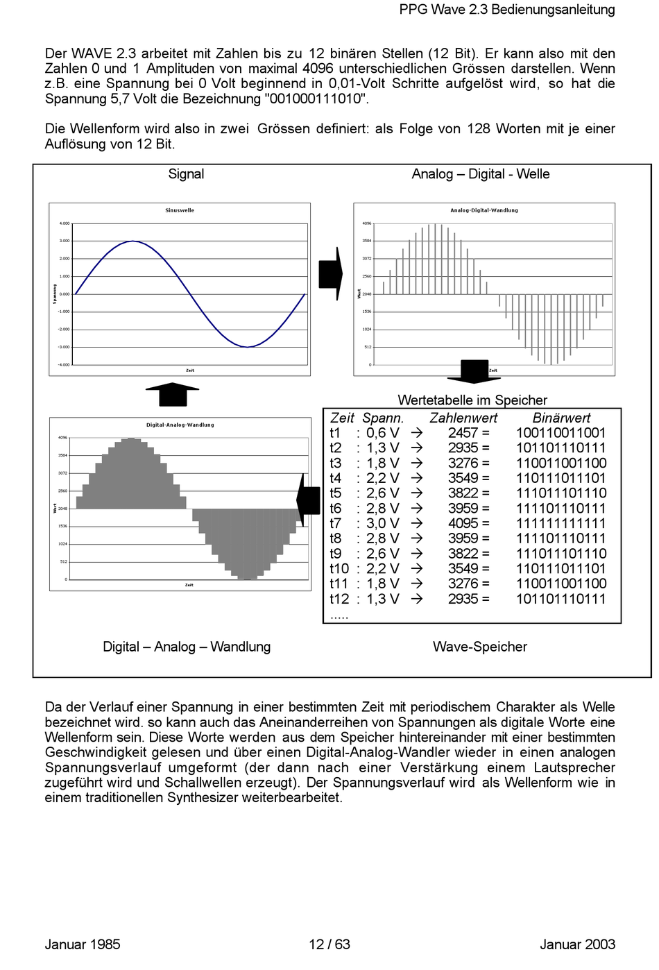 Der WAVE 2.3 arbeitet mit Zahlen bis zu 12 binären Stellen (12 Bit). Er kann also mit den