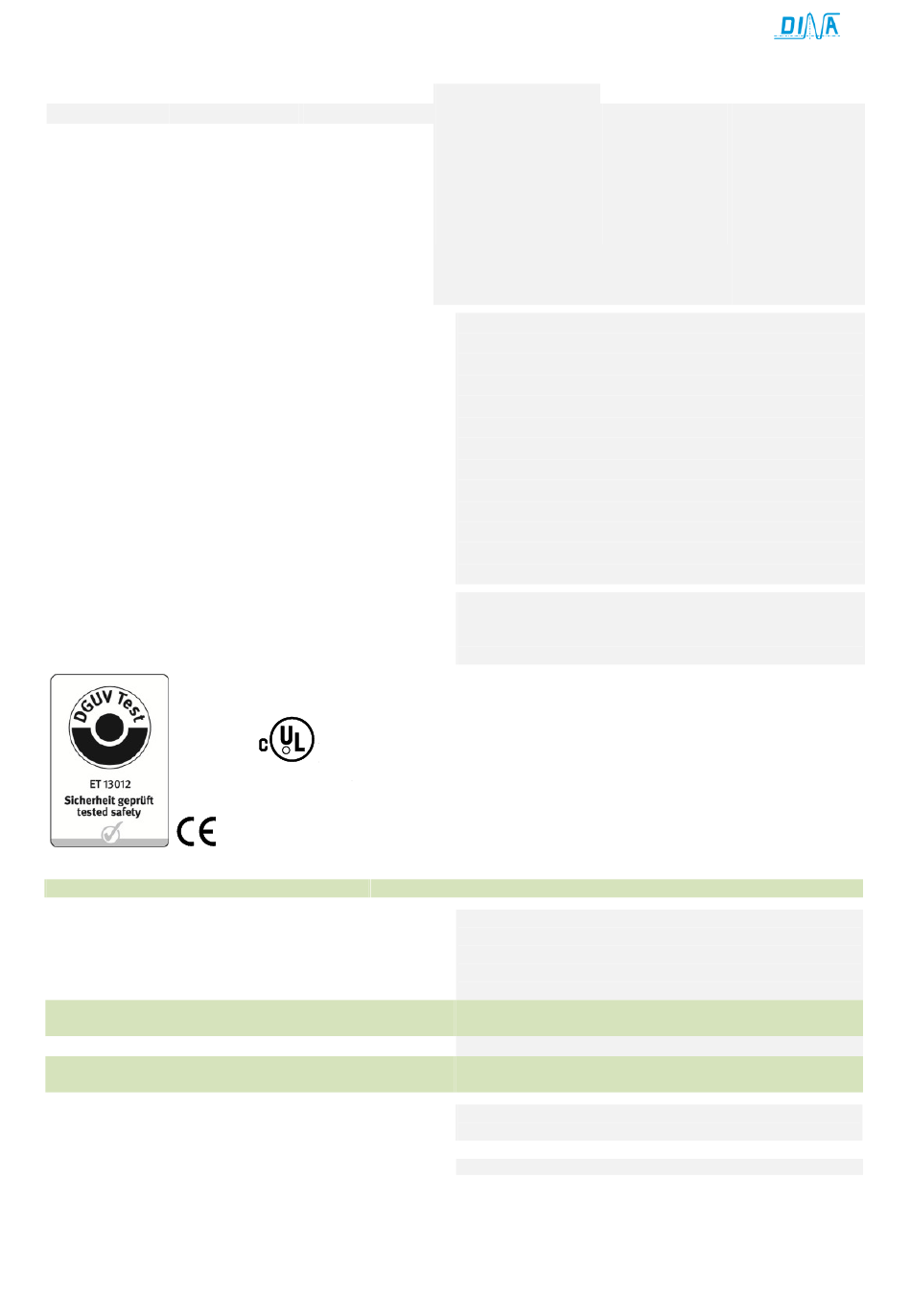 Zertifikat und EU Konformitätserklärung: Siehe www.dina.de