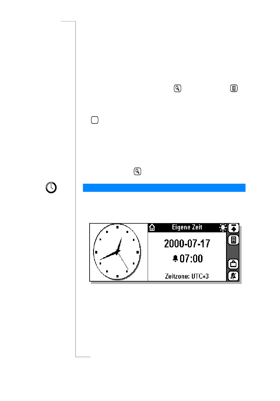 Analoguhr, „Eigene Zeit" angezeigt und Alarm aktiviert