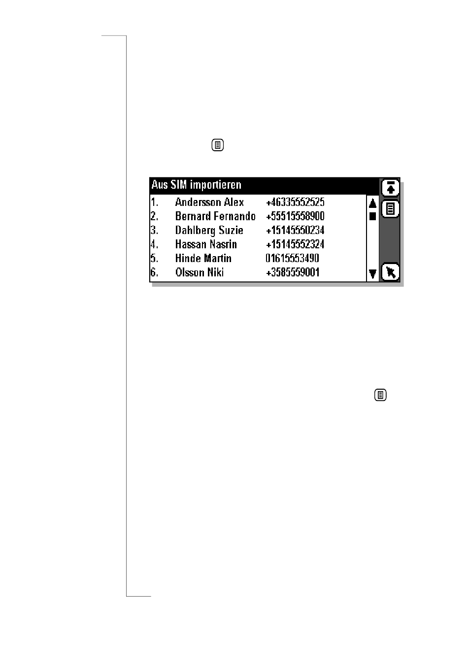Um eine Telefonnummer zu importieren, blättern Sie zum