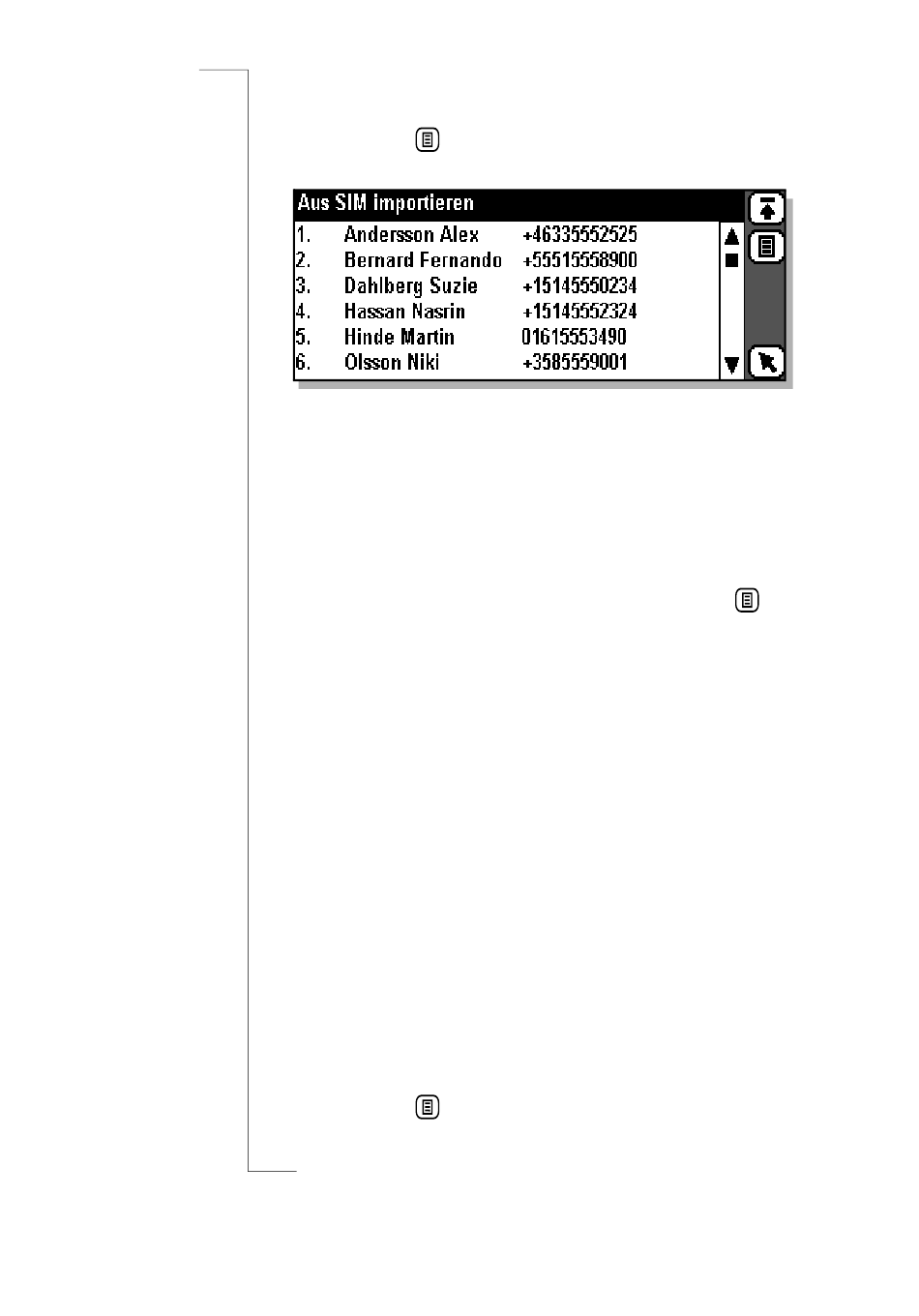 Um eine Telefonnummer zu importieren, blättern Sie zum