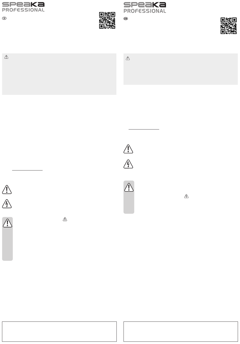 cause life-threatening electric shock!