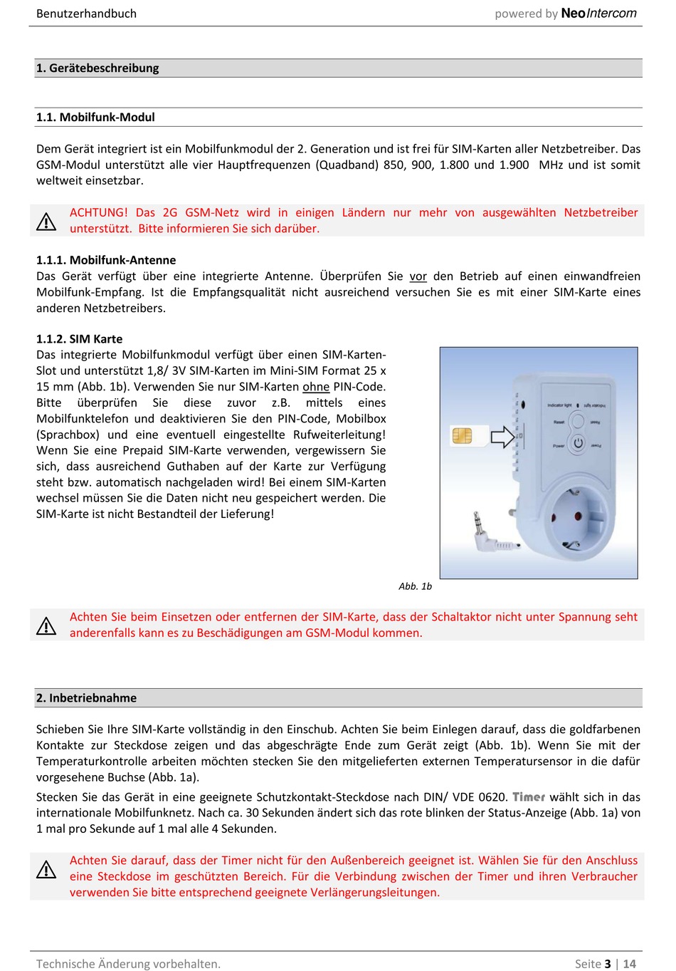 15 mm (Abb. 1b). Verwenden Sie nur SIM-Karten ohne PIN-Code.