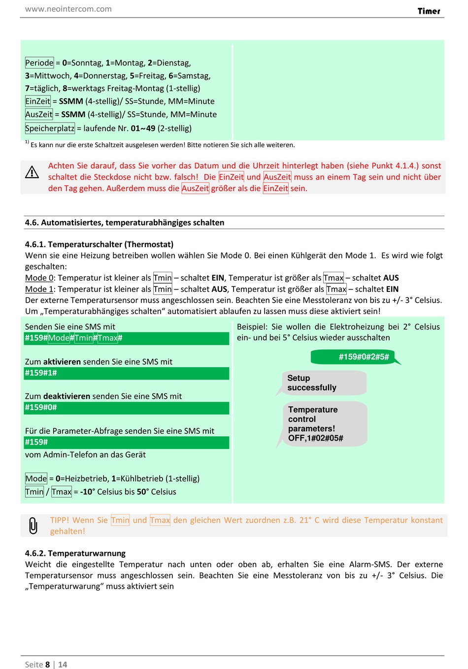 Weicht die eingestellte Temperatur nach unten oder oben ab, erhalten Sie eine Alarm-SMS. Der externe