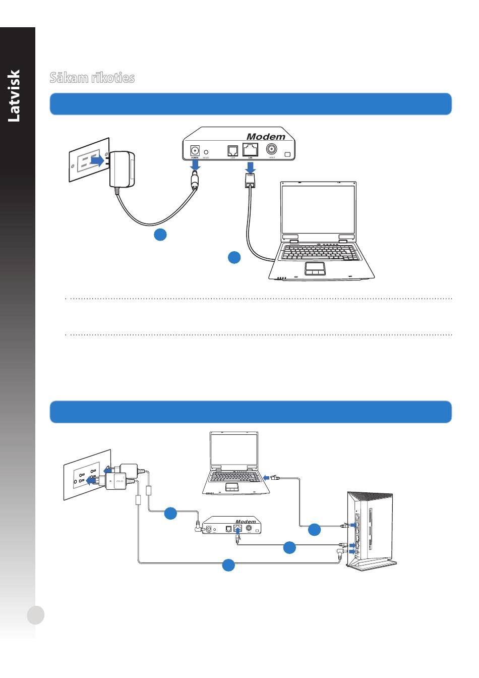 Izvelciet un atvienojiet vadus/kabe�us no j�su esošā modema pieslēguma
