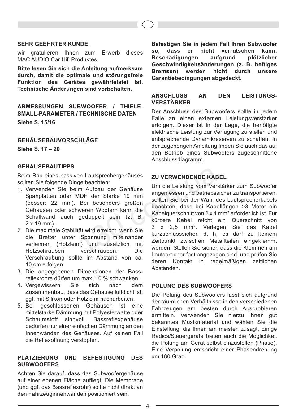 MAC Audio SX 12 Bedienungsanleitung/Garantiekunde Seite 5