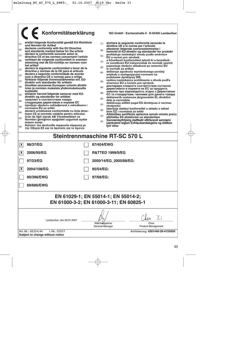EN 61029-1; EN 55014-1; EN 55014-2;