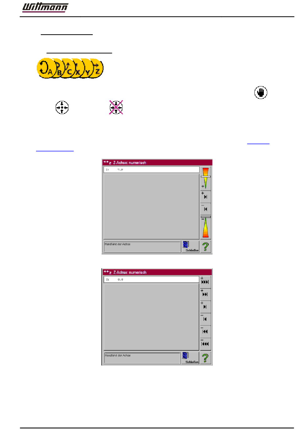 Mit dieser Funktion kann die gewählte numerische Achse in den Betriebsarten
