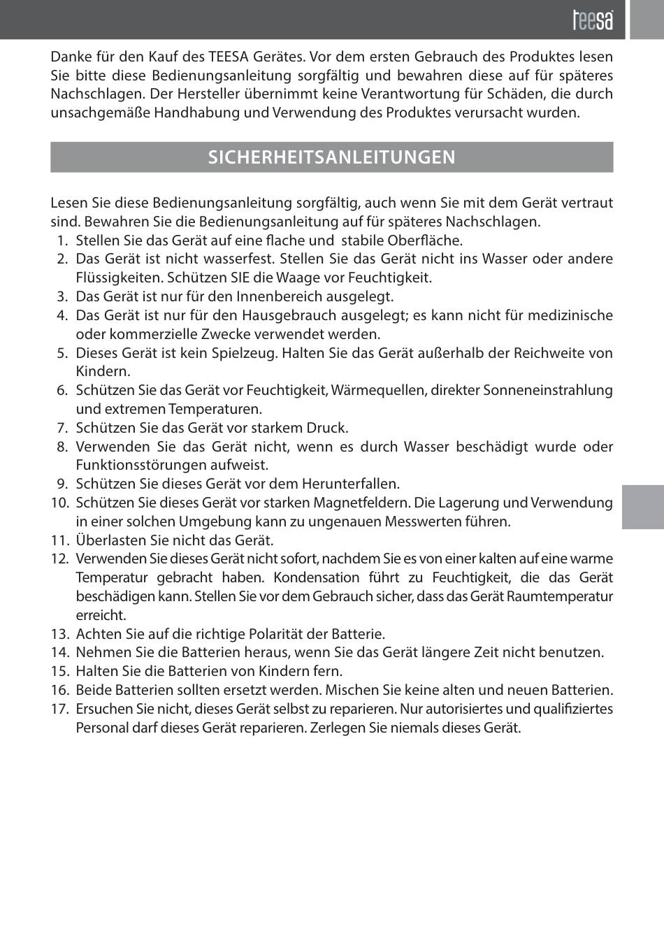 Küchenwaagen teesa TSA0804 Bedienungsanleitung