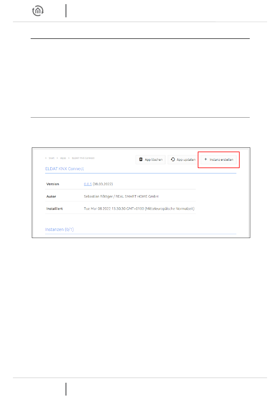 Abbildung 15: APPMODULE Easywave - ELDAT KNX Connect: Instanz erstellen