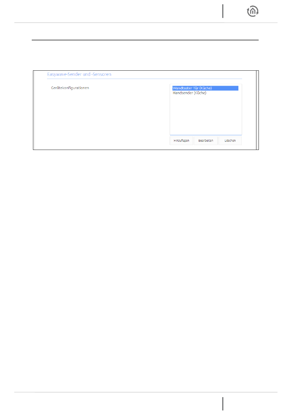 Im Bereich „Easywave-Sender und -Sensoren" werden alle bisher im APPMODULE Easywave angelegten
