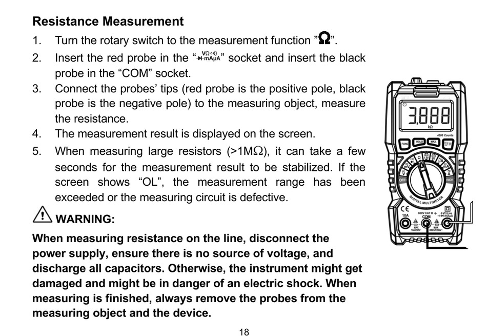 screen shows "OL", the measurement range has been