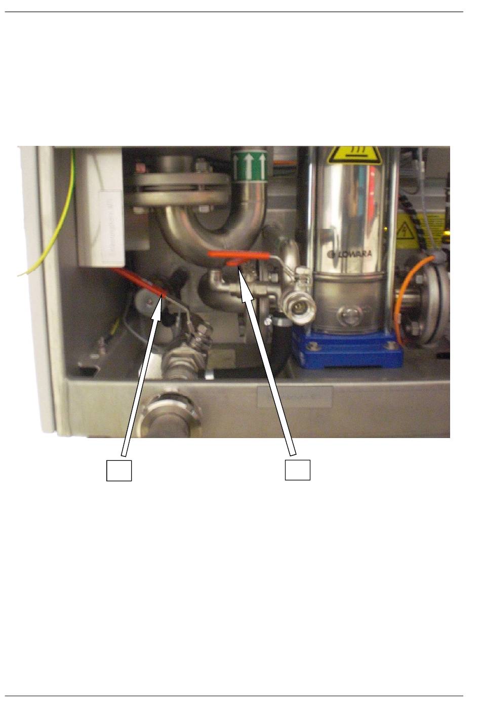 Die Entleeranschlüsse für Mediumtank 1, 2 sind hinten im Inneren der Reinigungsmaschine